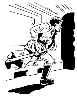 "What's this all about? Why can't you leave me alone? My name's not even on thr boards," wailed Flaggherty. He struggled futilely to release Jungle-boy's vice like grip. The sudden release of the grip on his shoulder sent Derek sprawling away in surprise.